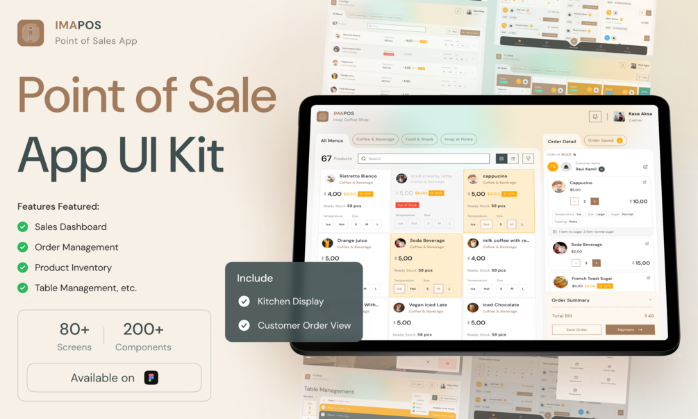 This Point of Sales App UI Kit is designed to meet your business needs with a complete and user-friendly feature set. With its professional and intuitive design, this UI Kit will accelerate the development of your Point of Sales application.
